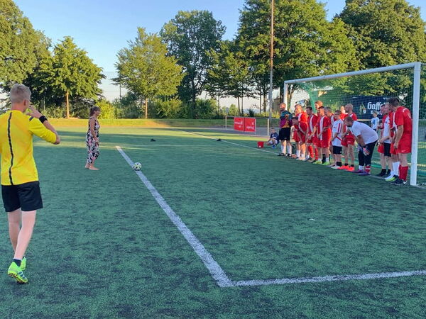 Am 29.06.19 fand zum dritten Mal ein Einlagespiel im Gallischen Dorf statt. Brisant war diesmal, dass es sich fast um ein Derby handelte. Unsere Jutta wurde verabschiedet und bevor sie das gallische Dorf erreichte, hatte Sie eine erfolgreiche Zeit beim TV Rott und vor allem bei SV Allner Bödingen hinter sich. Die Oldstars wie Jürgen Zawiasa, Ingo Dehmke, Christian Schmidt und Trainer Udo Schulz wurden noch um die Derbylage zu entspannen mit Legenden wie Julian "Ossi" Steinsiepe, Stiefel Axler und Rafi Rindfleisch (natürlich mit seinen legendären Torwart-Trikot) ergänzt. Zusätzlich wurden die jüngsten Gallier (Söhne von Daniel Thorbeck und Thomas Mandrek) und der Nachwuchs der Großfamilie Hipke als Verstärkung in die erfahrenen Hände von Udo Schulz übergeben.
