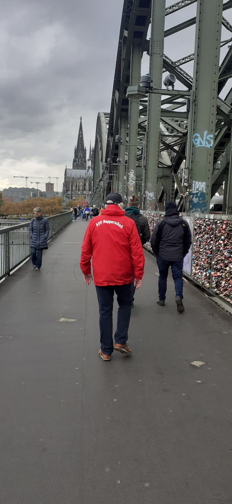 In doch recht überschaubarer Besetzung ging es mit dem Zug nach Köln und der Tradition folgend wurde in Deutz auch direkt ein erster Zwischenstopp in der historischen Gaststätte „Lommerzheim“ eingelegt. Anschließend ging es über die Hohenzollernbrücke Richtung Dom, wo auch der kulturelle Teil der Tour stattfand. Unser langjähriges Mitglied und Organisator der diesjährigen Tour, Dieter Lupa, führte uns zu einigen, mittlerweile fast vergessenen, Orten des Geschehens und gab beeindruckende, aber auch nachdenkliche Einblicke über Köln während des 2. Weltkrieges.